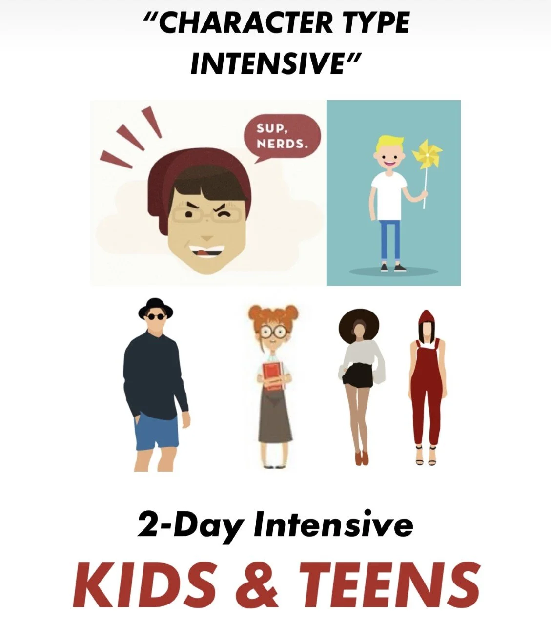 This fun-filled 2-day class will dive into the specific elements of different character types that are often found in kid & teen roles for both comedy and drama in TV and film.